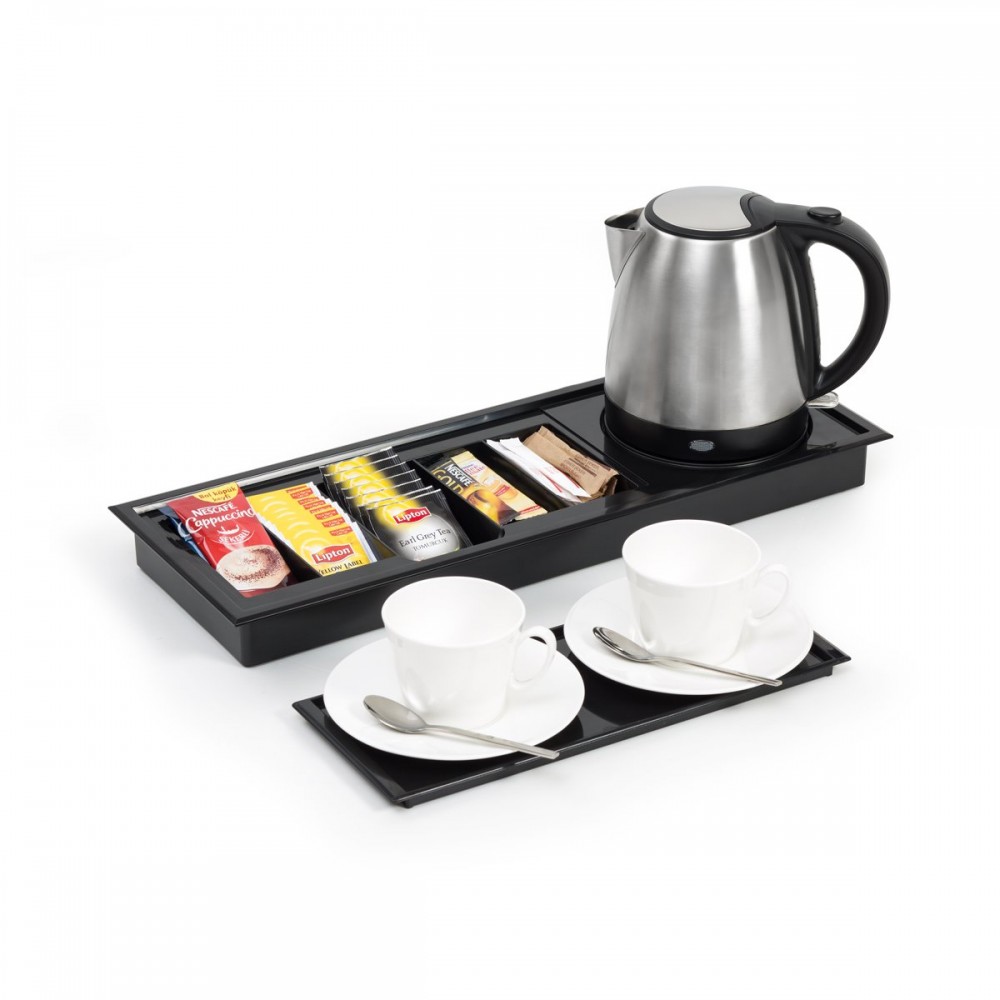 Otellerin odalarında misafirlerine çay, kahve ve su ikramında kullandıkları hoşgeldin tepsisi, modern ve estetik tasarımı, işlevselliğiyle tercihcihlerinde ilk sırada yer almaktadır. Gövdesi ABS olan ikram tepsisinde kettle, çay, kahve ve şeker bölmesi yer alır, fincan tepsisi hareketli olması avantaj sağlar.